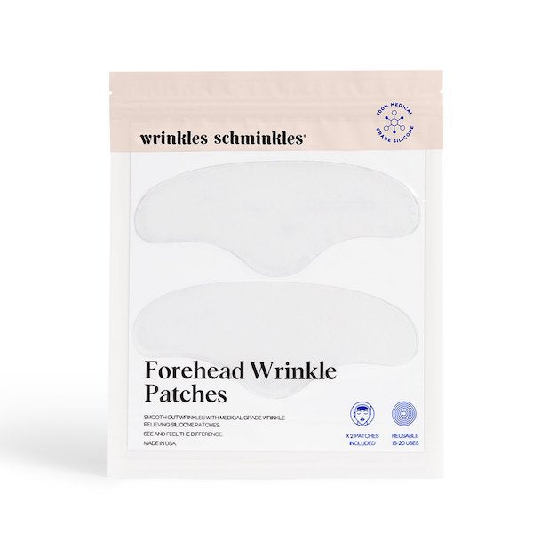 Wrinkles Schminkles Forehead Wrinkle Patches is a USA-made 100% medical grade silicone patch designed to improve creasing of the forehead and area in between the eyebrows (a.k.a. frown lines or 11's). Intended to be worn overnight or during the day, the patches work by holding the skin taut, preventing moisture loss, and increasing blood flow to the skin. When used over time, the patches can also stimulate collagen production.